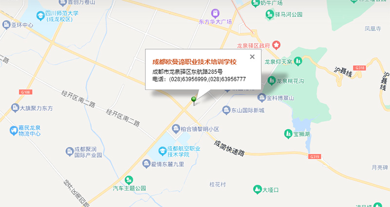 成都欧曼谛技工学校坐落在美丽的成都市龙泉驿区,地址位于东航路285号,地铁、公交车都很方便。为了照顾第一次到校的同学们,学校还为同学们开通了免费校车接站服务,有需求的小可爱们可以点击下方预约通道即可在线预约啦!