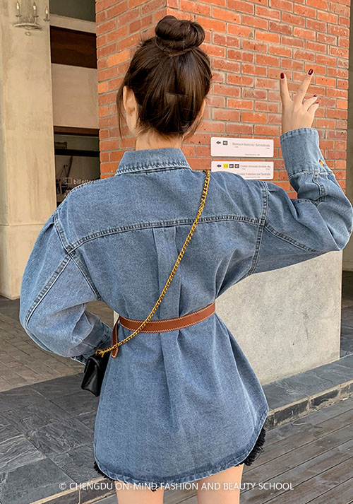 牛仔的配搭可以千变万化,牛仔衬衫加点小心机配饰,完全可以当小风衣或者裙子来穿搭,看你自己的心情和驾驭程度了,腰间搭配一条腰带,复古加分!